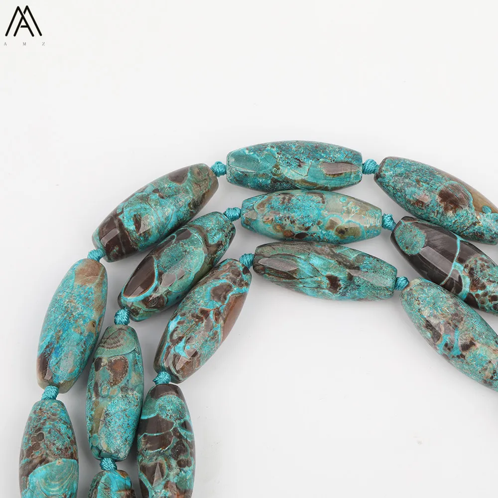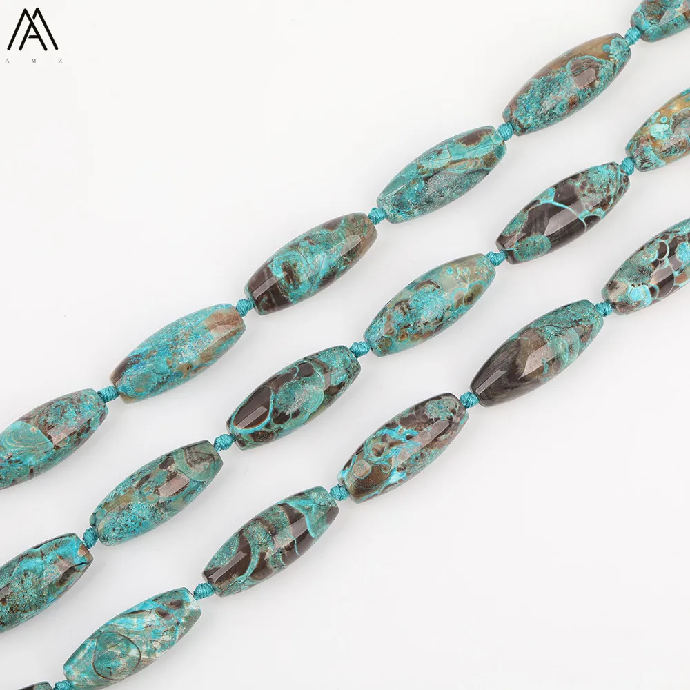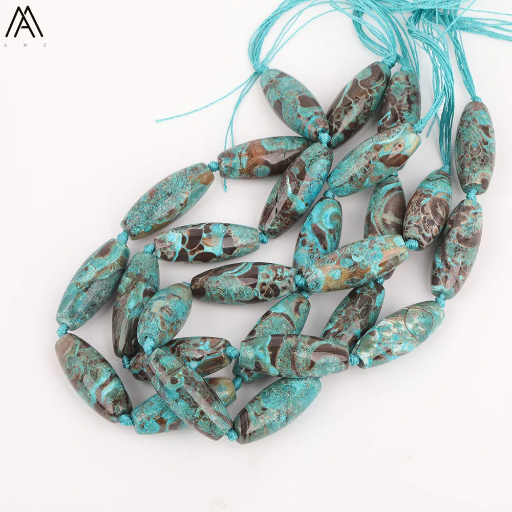 Full Strands Blue Color Ocean Stone Oval Beads Pendant NecklaceNugget Ocean Jaspers Spacer Beads Ch