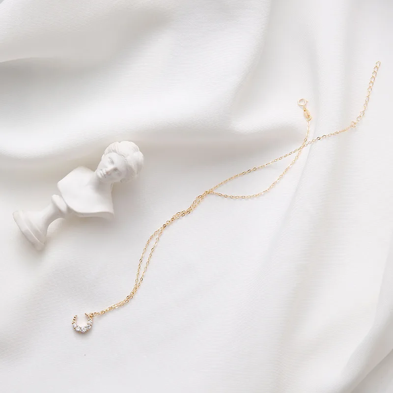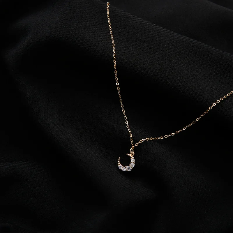 high quality simple cute retro 925 silver moon pendant with gold chain girls Jewelry AAA zircon sho
