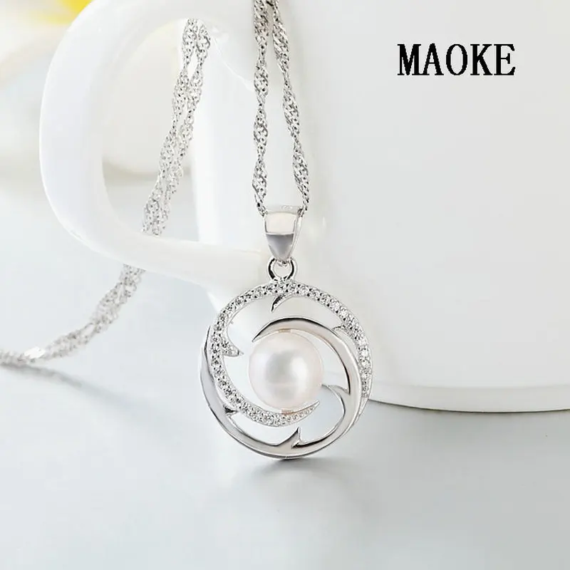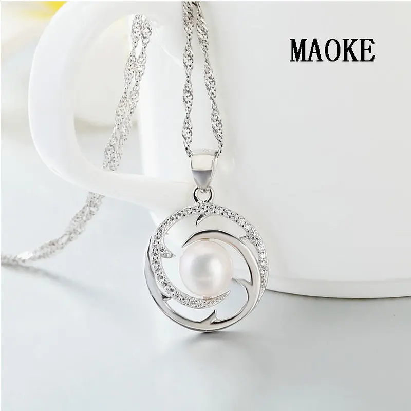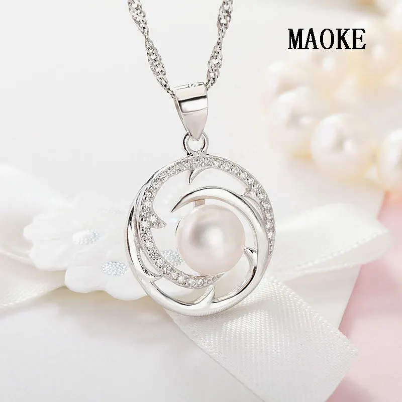 BEST QUALITY Promotional S925 Sterling Silver Natural Freshwater Pearl Pendant Bread Bead Necklace Fashion Jewel