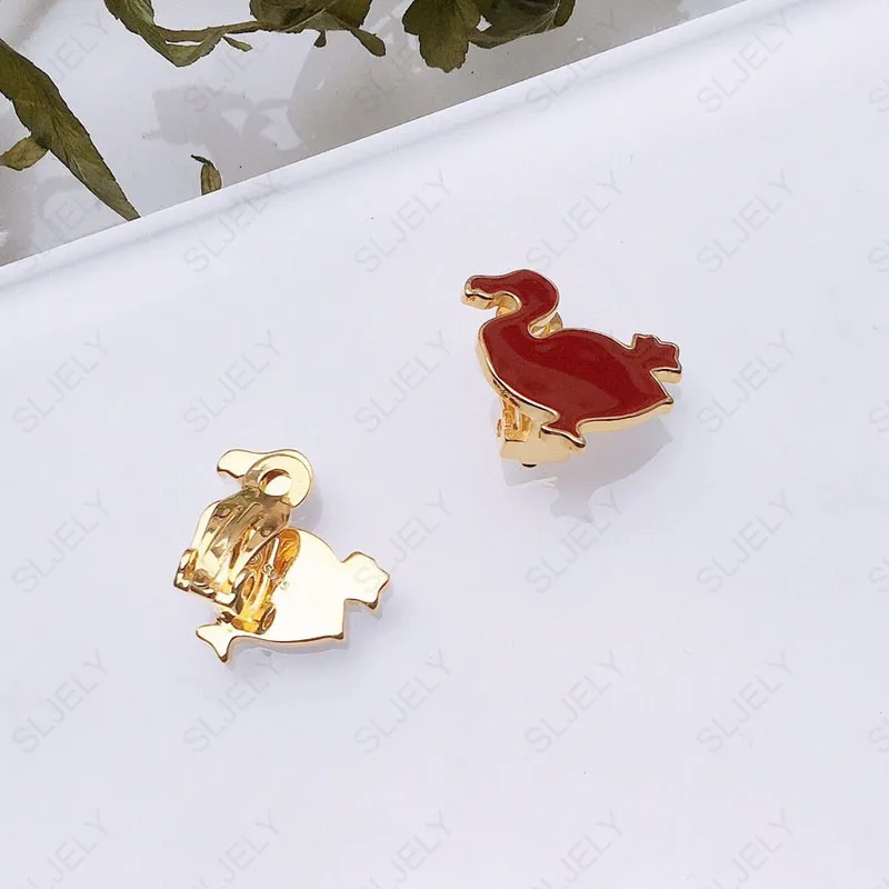 Fashion 925 Sterling Silver Jewelry Red Dodo Bird Clip Earrings No Piercing Earrings for Women Prot