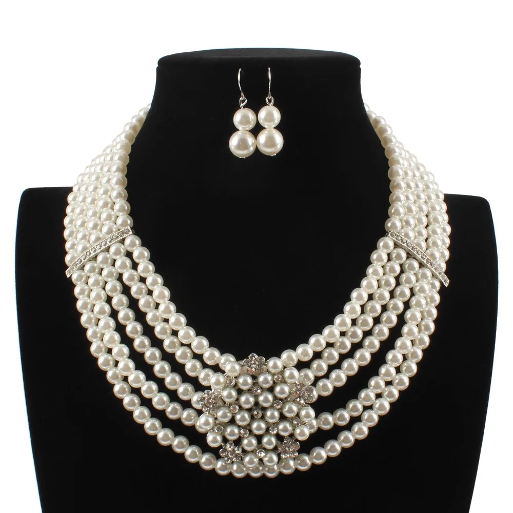 Best Quality New Jewelry Necklace Alloy Flower Imitation Pearl Necklace Clavicle Chain Necklace