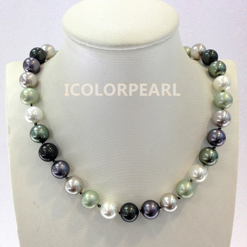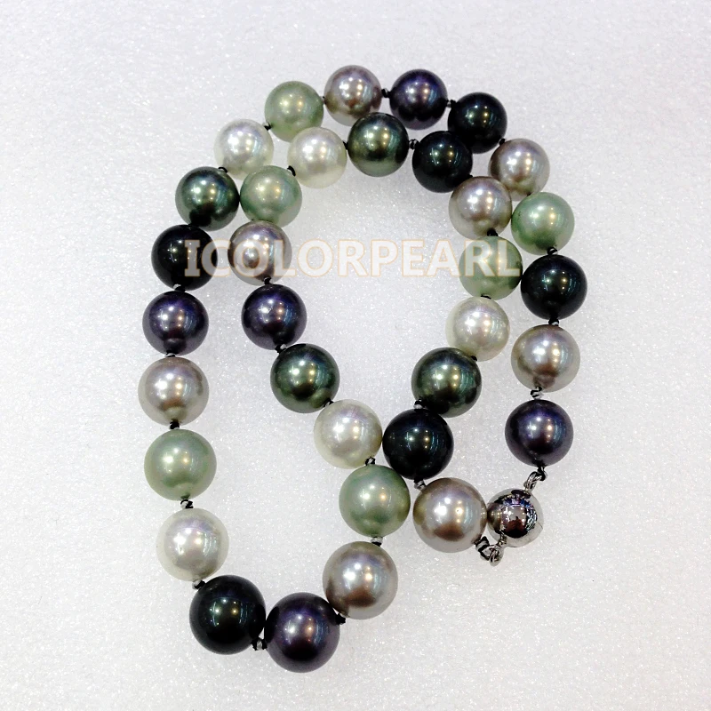 BEST QUALITY WEICOLOR 45cm Long 12mm Round Multicolor Mother Pearl Jewelry Necklace With A Strong Magnet Clasp