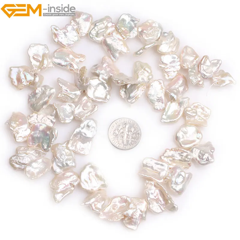 Review Gem-inside Natural Top Drilled 37 Hole Flat Freeform Freshwater Cultured Pearls Beads for Jewelry M