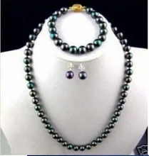 BEST Natural WOMEN 8-9MM PERFECT BLACK PEACOCK GREEN PEARL NECKLACE BRACELET EARRING word mujer for wome