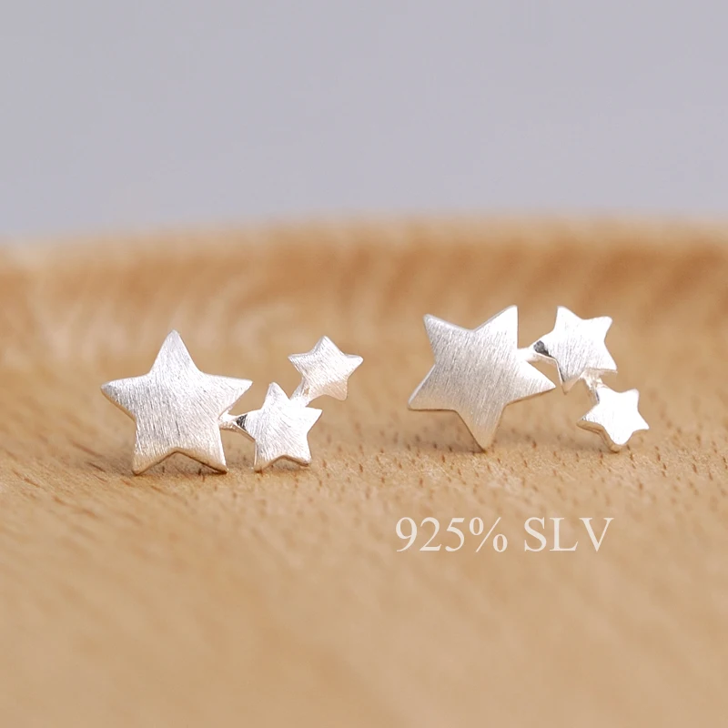 S925 wiredrawing silver jewelry stud earring female pure silver brief fashion all-match anti-allerg