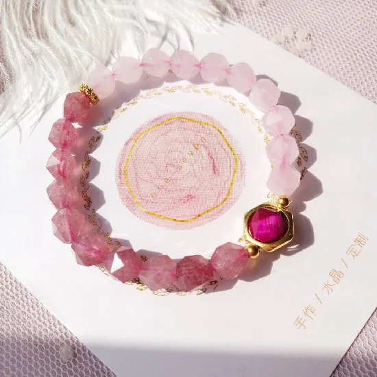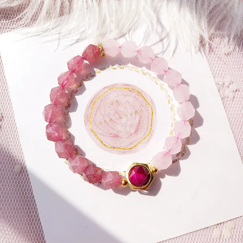 Best Women S925 Silver Strawberry Crystal Hand String Pink White Natural Stone Beauty Jewelry Wholesale
