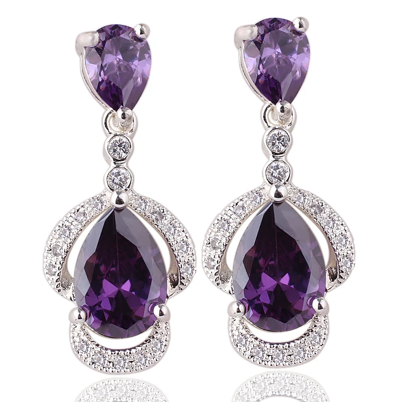 Review Women 925 Silver Earrings Sterling Dangle Design with Piercing Double Pear Cut CZ Jewelry E094