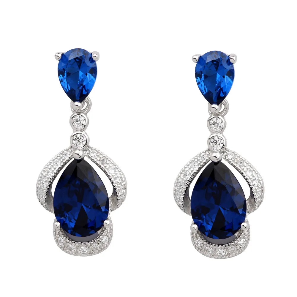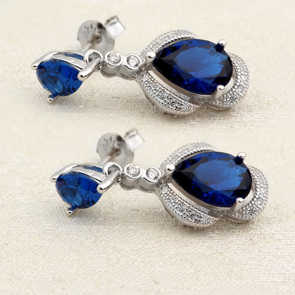 Women 925 Silver Earrings Sterling Dangle Design with Piercing Double Pear Cut CZ Jewelry E094