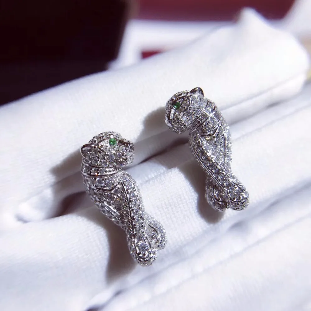 Best Fashion Designer Fashion 925 Sterling Silver Panther Earrings With Cubic Zirconia For Women Rose Go