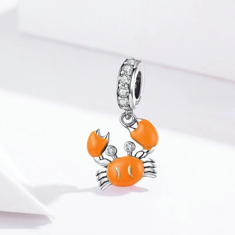 HIGH QUALITY Summer Crab Charms for Women Jewelry Making Sterling Silver Enamel Charm fit Silver European Snake