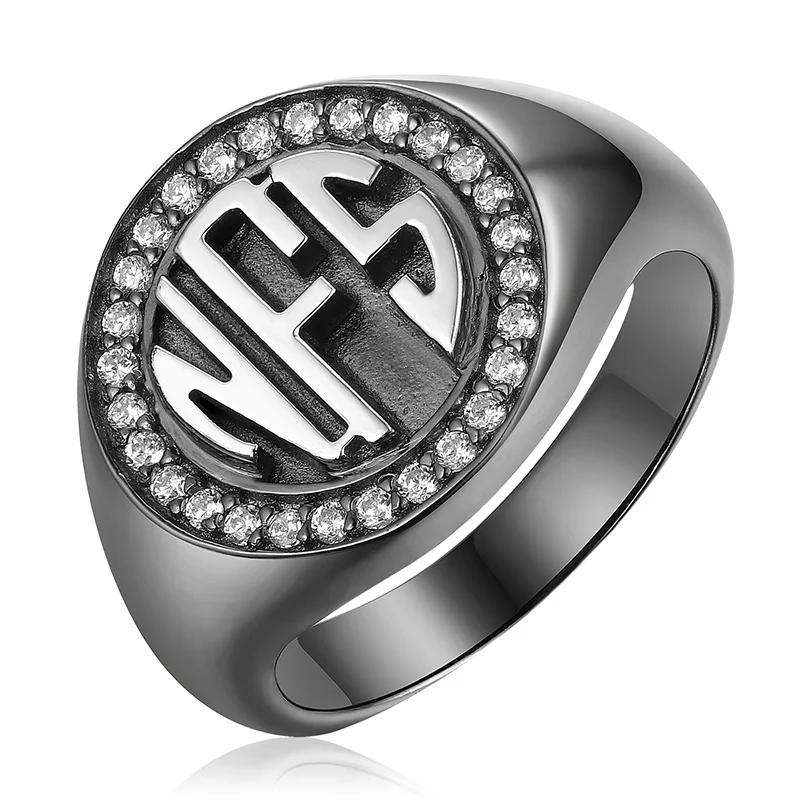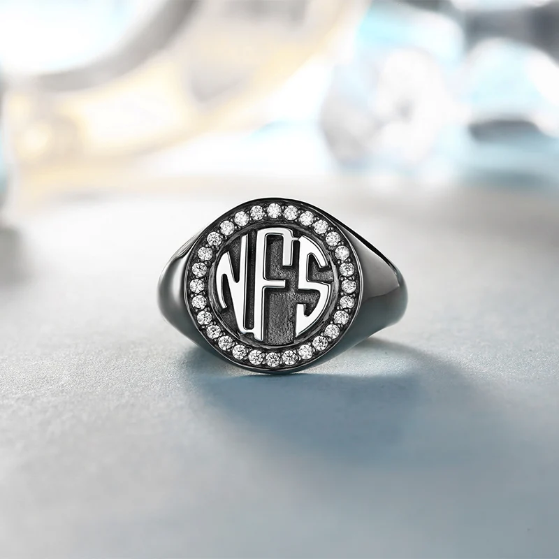 BEST Wholesale Custom MO Female&Male Black Plated CZ's Circle Monograms CZ's Rings Unique MO Signet Jewe