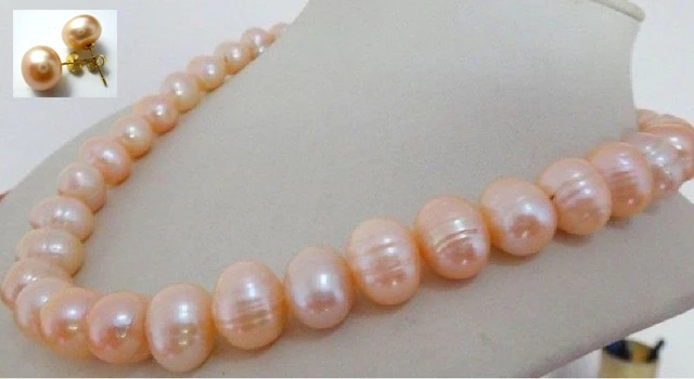 HIGH QUALITY 18inch elegant 12-13mm natural pink freshwater pearl necklace earring