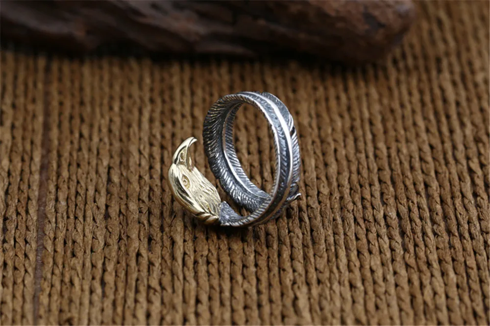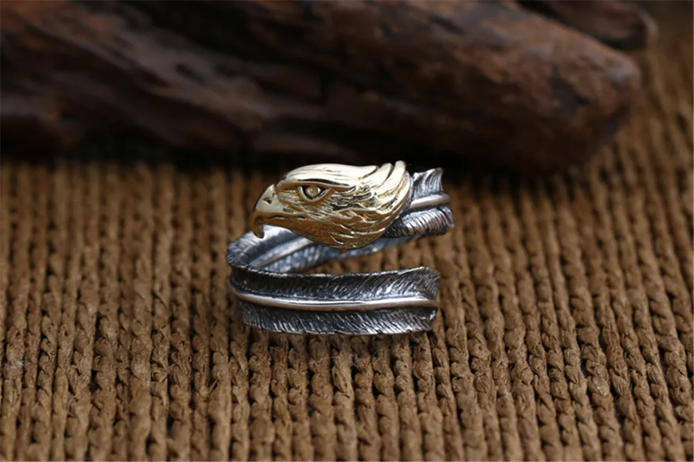 Best Quality Genuine 100% 925 Sterling Silver Vintage Punk Locomotive Indian Eagle Ring For Women Men Fashion Je