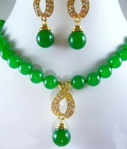 Review Top hot sell new - set of green gem bead necklace pendant earrings NEW silver wedding jewelry marvel ch