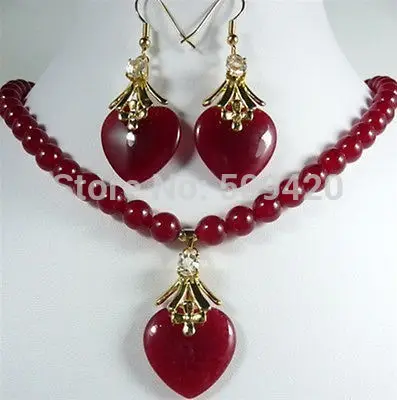 HOT SALE Shipping Wholesale>>>JJ6543 8mm red necklace 17 "& heart love earrings pendant set
