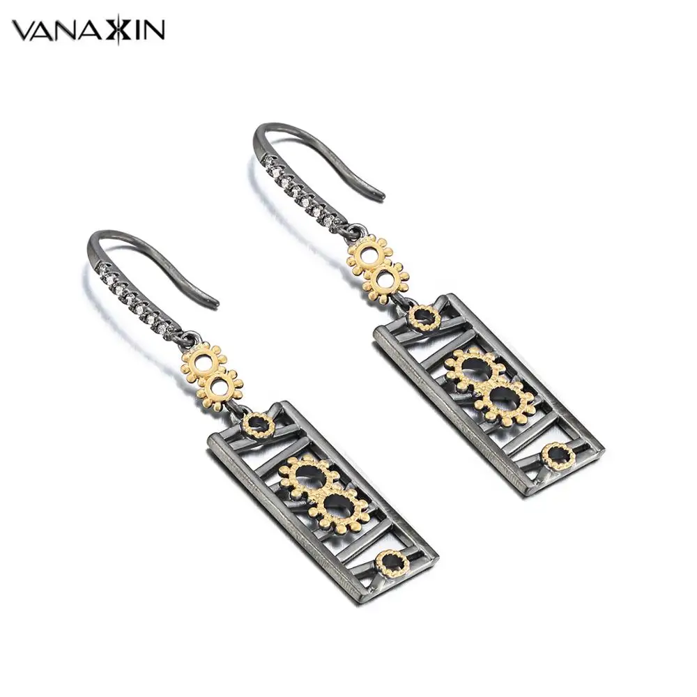 VANAXIN Vintage Earrings For Women Antique Thai Silver Party Drop Earrings Retro Jewelry Gift Box B